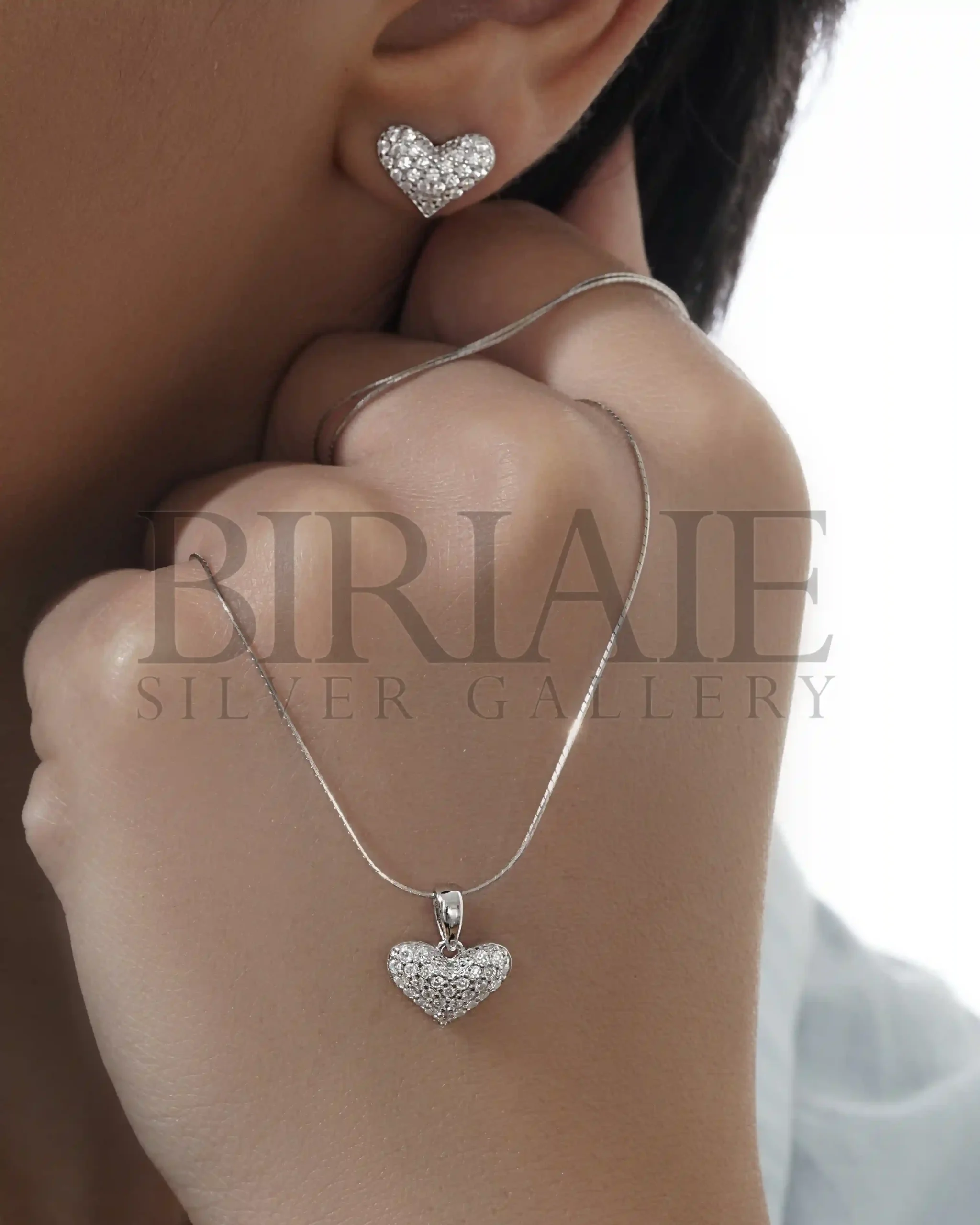 نیم ست زنانه قلب نگین دار نقره 925 عیار AJHS10225