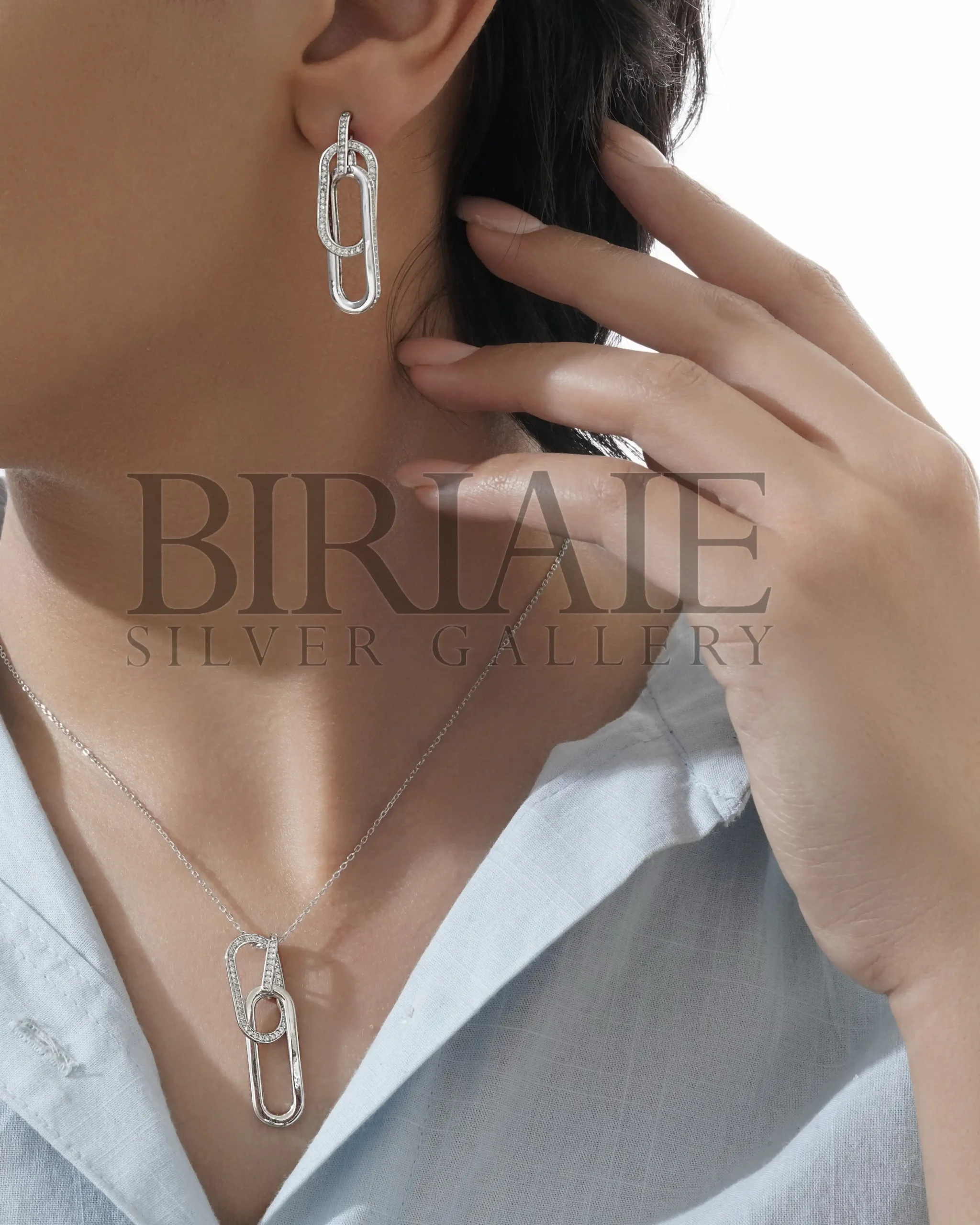 خانه زیورآلات نقره و استیل زنانه نیم ست مادر و دختر نقره 925 عیار AJHS10245