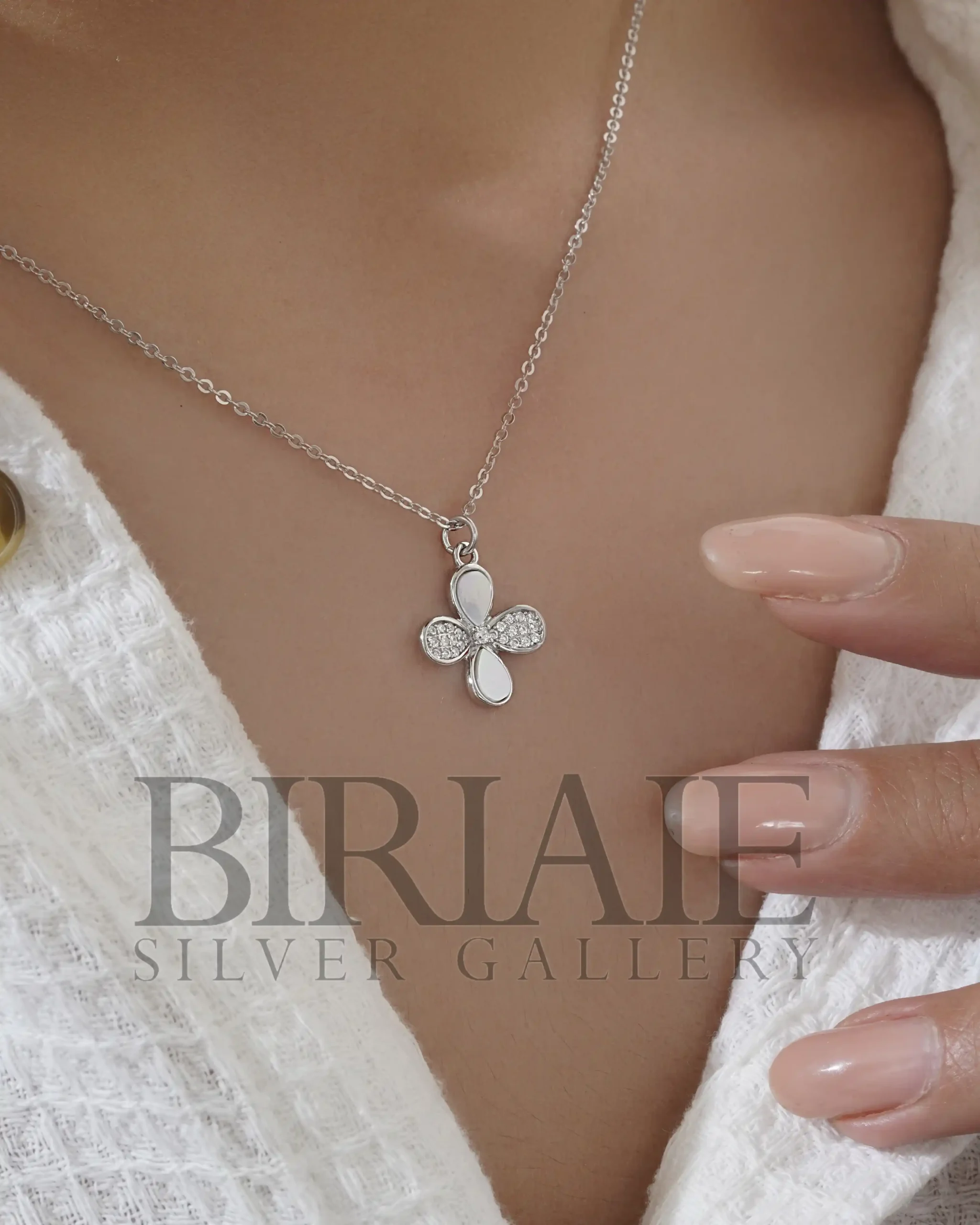 گردنبند گل صدف نقره 925 عیار AJPN10275