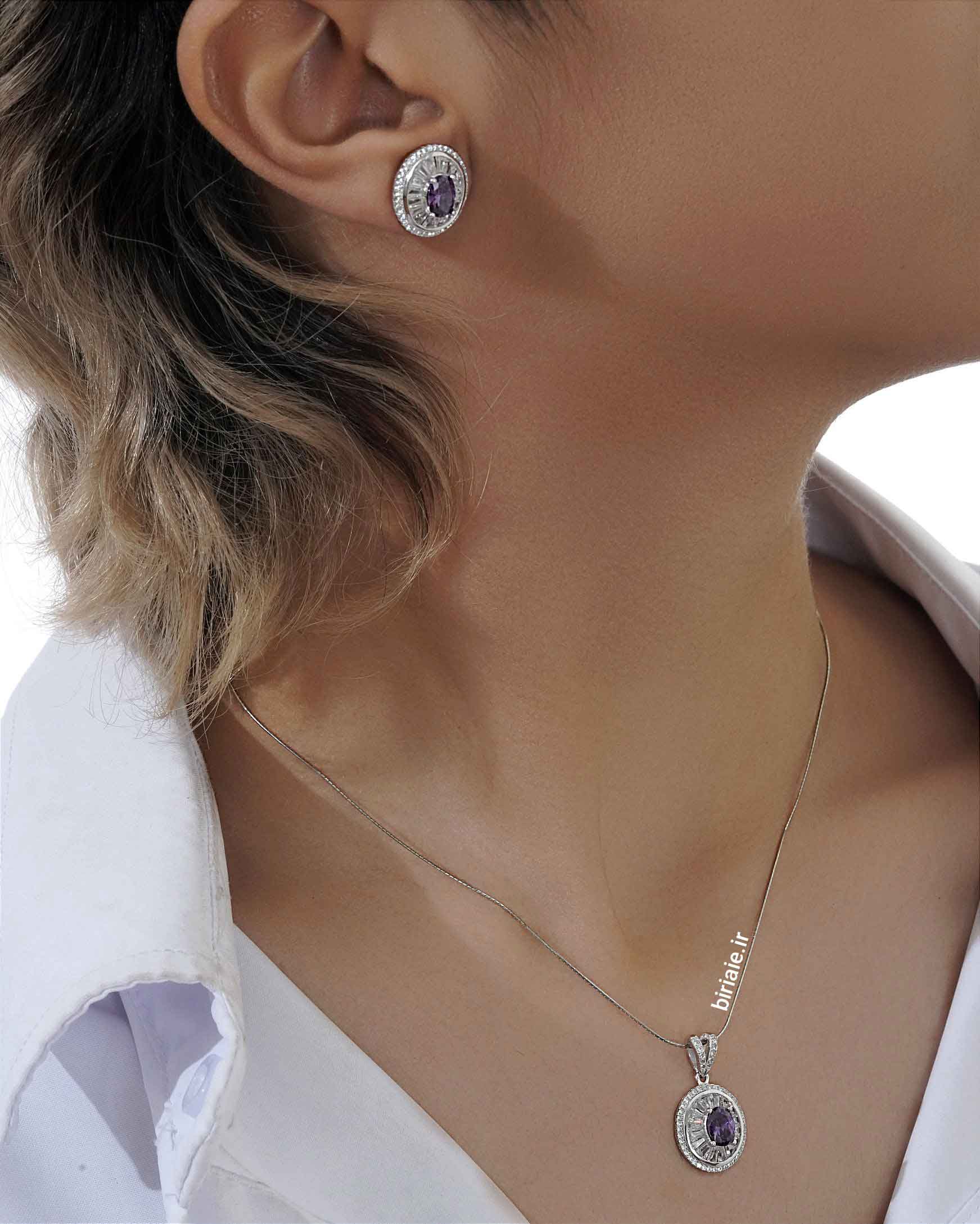 نیم ست آماتیس نقره طرح جواهری 925 عیار KHHS10286